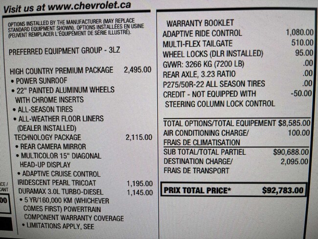 - Engine : 3.0L Duramax® Turbo Diesel engine Automatic 4WD