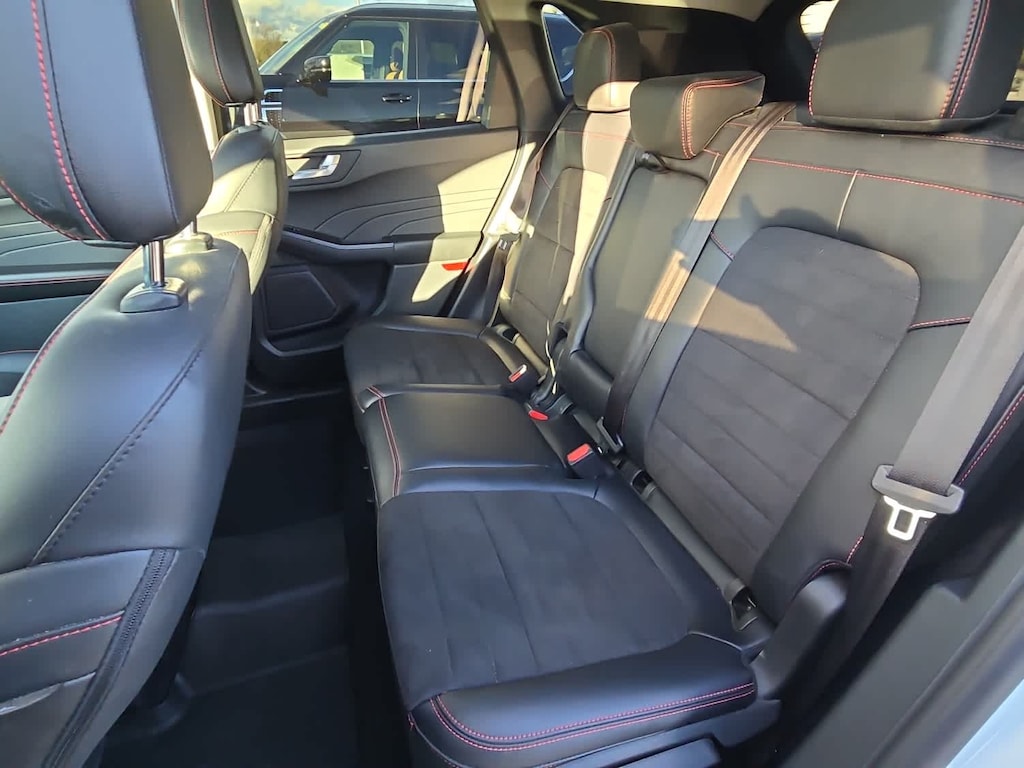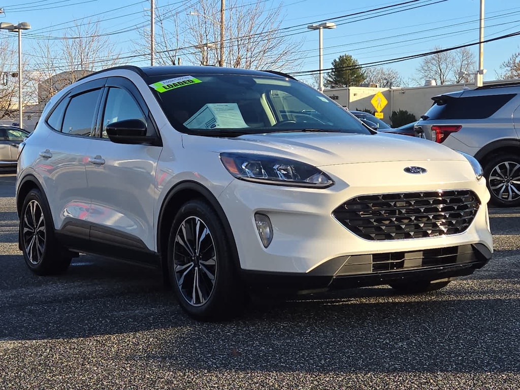 power open/close w/power shade, Black Roof-Rack Side Rails, Front & Rear Floor Mats w/Logo, Wheels: 19 Machined-Face Ebony-Painted Aluminum, Tires: 19, Gloss Black Badges & Emblems, Front & Rear Black Ford Oval, Gloss Black 5-Bar Upper Grille w/Chrome Surround, Front & Rear Black Skid Plate Bumpers, Gloss Black Sideview Mirror Caps, Black Upper Window Molding w/Black Beltline Molding, Hands-Free Foot-Activated Liftgate, Wireless Charging Pad, Memory Package, drivers seat & side-view mirrors, 10-Way Power Driver Seat, fore/aft, up/down, tilt adjustments, power lumbar and power recline, Radio: B&O Sound System by Bang & Olufsen, 10-speakers including subwoofer, speed compensated volume and SiriusXM radio w/a 3 month prepaid subscription, Note: SiriusXM audio and data services each require a subscription sold separately, or as a package, by Sirius XM Radio Inc, If you decide to continue service after your trial, the subscription plan you choose will automatically renew thereafter and you will be charged according to your chosen payment method at then-current rates, Fees and taxes apply, To cancel you must call SiriusXM at 1-866-635-2349, See SiriusXM Customer Agreement, Adaptive cruise control w/speed sign recognition is intelligent adaptive cruise control, Evasive Steering Assist, Intelligent Adaptive Cruise Control w/Stop-and-Go, lane centering, Voice-Activated Touchscreen Navigation System, pinch-to-zoom capability, SiriusXM Traffic and Travel Link, SiriusXM Traffic and Travel Link includes a 5 year prepaid subscription, After your trial period ends, SiriusXM audio and data services each require a subscription sold separately, or as a package, by SiriusXM Radio Inc, See SiriusXM customer agreement for complete terms at www.siriusxm.com, All fees and programming subject to change, Speed Sign Recognition, CLASS II TRAILER TOW PACKAGE, auto start-stop technology (STD). Ford SEL with Star White Metallic Tri-Coat exterior and Ebony interior features a 4 Cylinder Engine with 250 HP at 5500 RPM*.