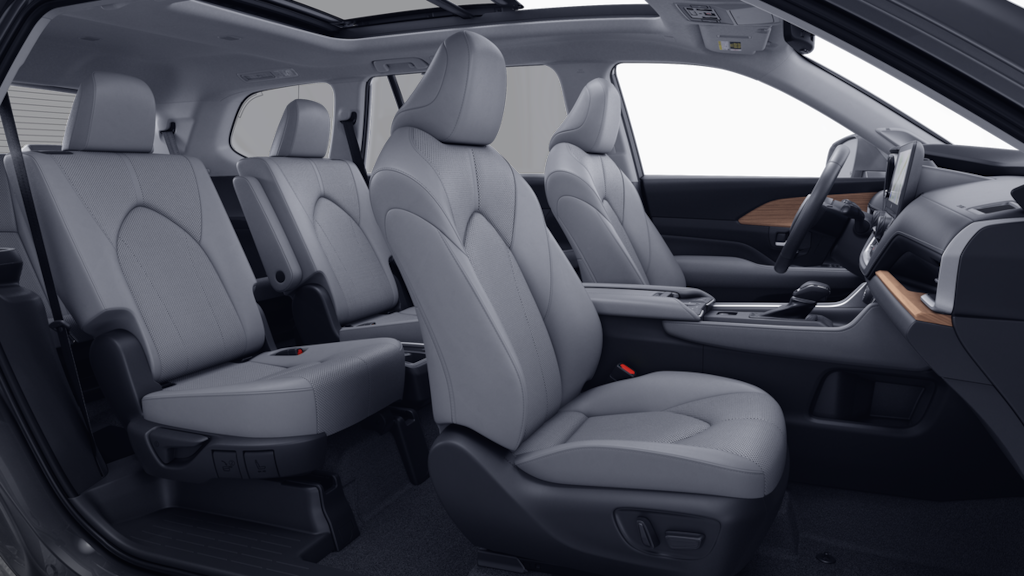 • 7-passenger seating with second-row fold-down captain's chairs and fold-down inboard armrests, adjustable headrests and two cup holders mounted on the floor and 60/40 split, fold-down third-row seats with sliding headrests and recline function